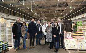 La Présidente du Département, Marie Christine Cavecchi, accompagnée de Paul Dubray, Conseiller départemental en charge de la Ruralité et des Relations avec le monde agricole, des élus du Département et des Présidents de la CCI Val d'Oise et Medef95, a visité le Marché Intern...