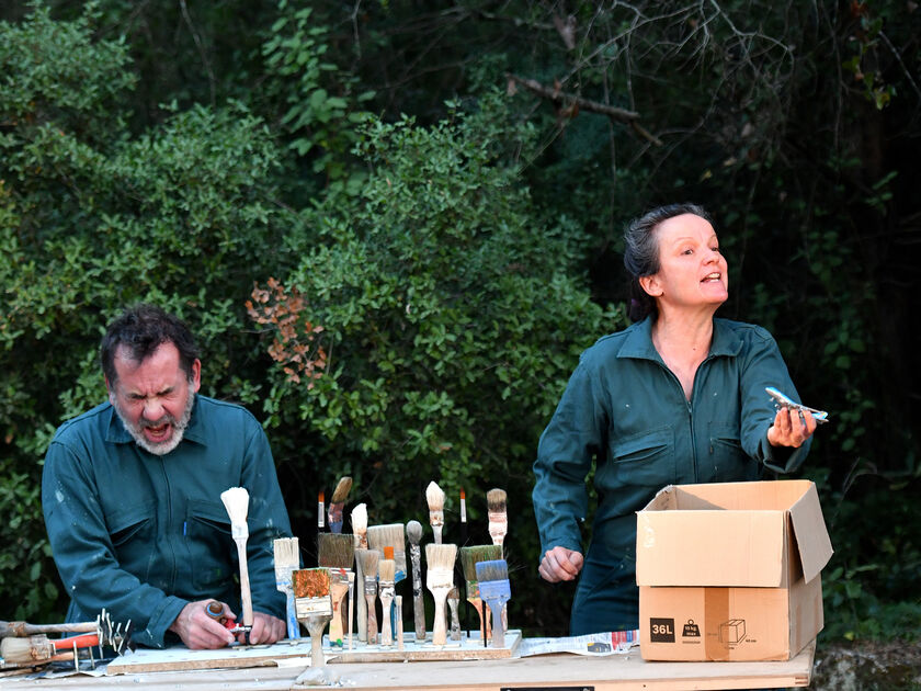 Équipés de combinaisons de travail, deux comédiens reconvertis dans le bricolage évoquent l’apparition de la vie sur Terre : espèces végétales, animales… et l’humain dans tout ça? Avec ce qu’ils ont sous la main, pinceaux, outils, rouleaux de scotch et objets de récup’, ils illustrent leur propos avec humour et poésie. Le pari est audacieux mais ils y croient jusqu’au bout, car il parait que l’espoir fait vivre. Quant au désespoir, mieux vaut en rire !