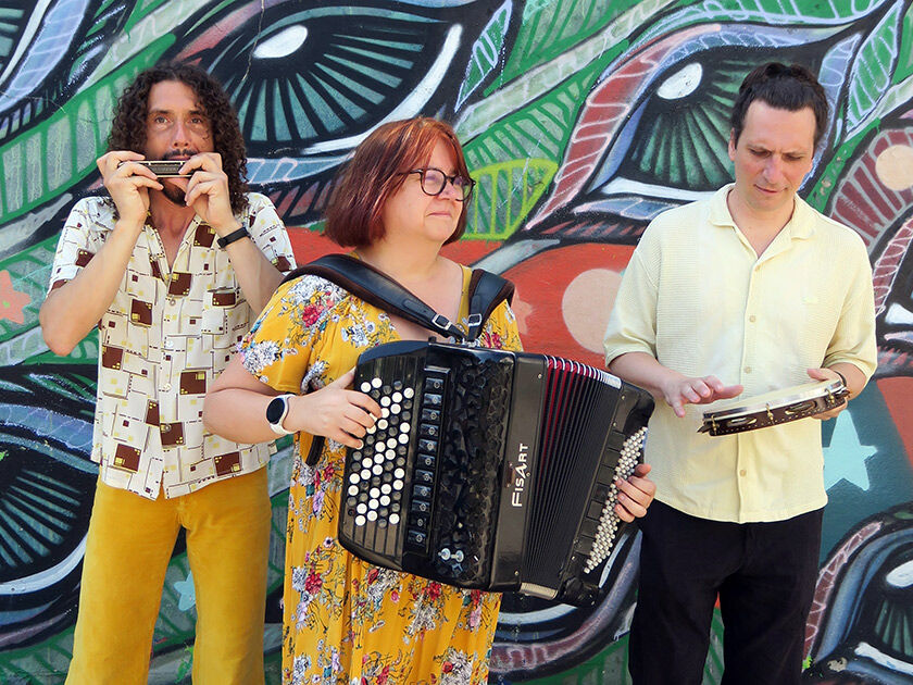 Karine Huet (accordéon chromatique) ; Thomas Laurent (harmonica) ; Sébastien Pacreau (pandeiro et triangle).