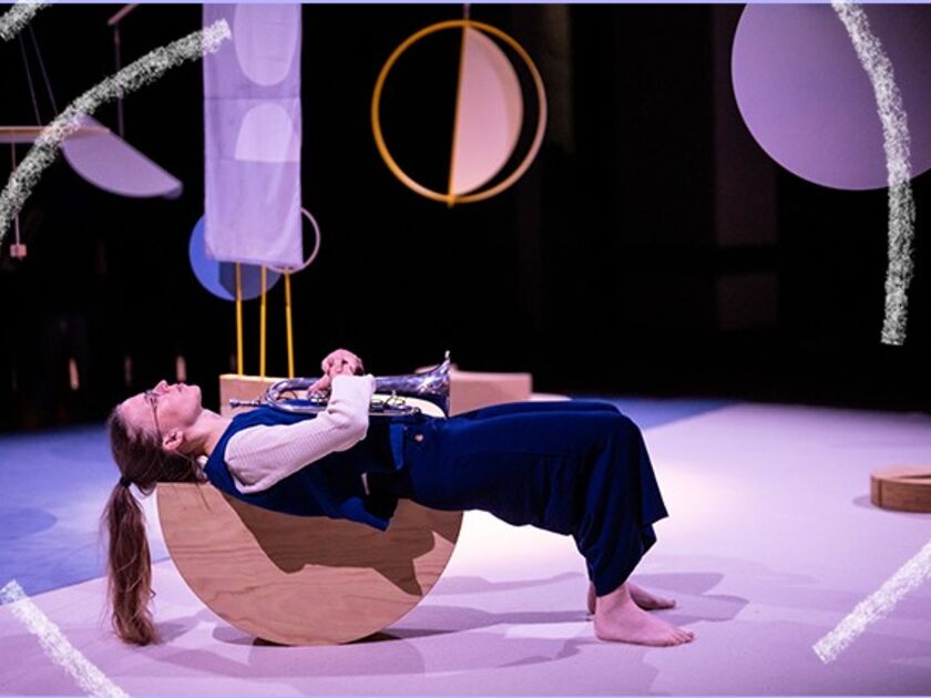 Dans un espace circulaire, une trompettiste, une violoncelliste et une chanteuse évoluent au plus près des spectateurs. Les mobiles suspendus en l'air et les objets posés au sol prennent des allurs de lune. Quant à l'oiseau, il fait son apparition par le biais du langage musical.