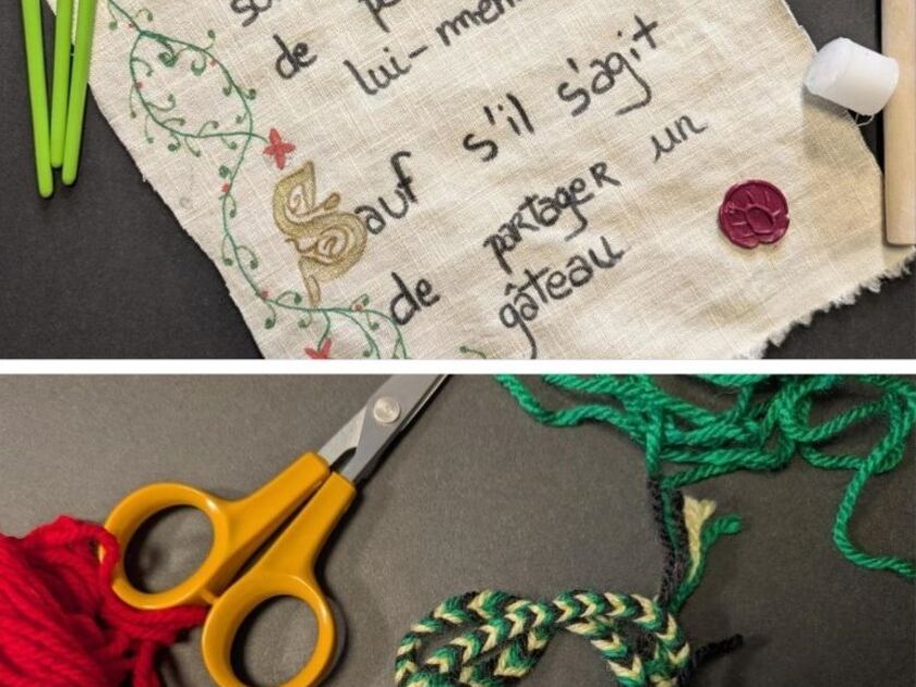 Tisse un bracelet coloré à trois fils avec de la laine et du carton, comme au temps des Mérovingiens.
